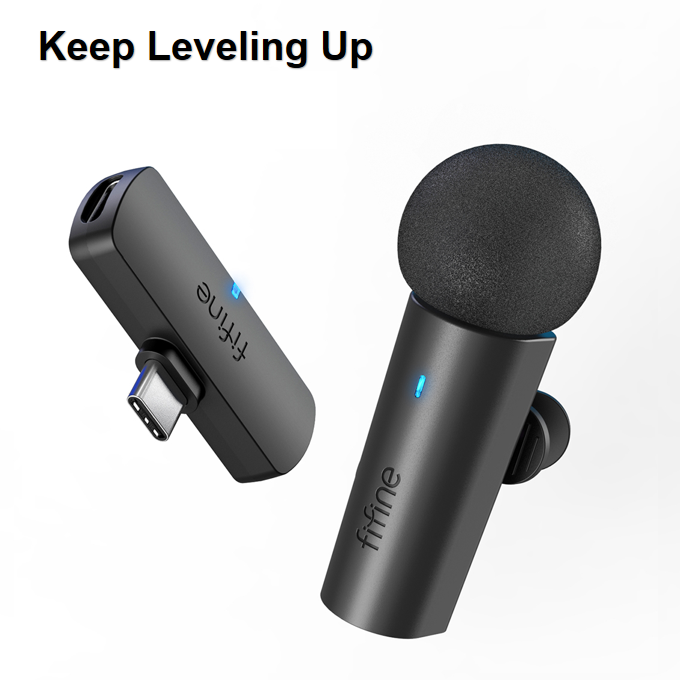 FIFINE Keep Leveling Up Wireless Lavalier Lapel Microphone System for Phones/Tablets, 2.4GHz Cordless Condenser Omnidirectional Clip-on Mic, USB C Receiver, for Video, Interview, Vlog, YouTube, Recording