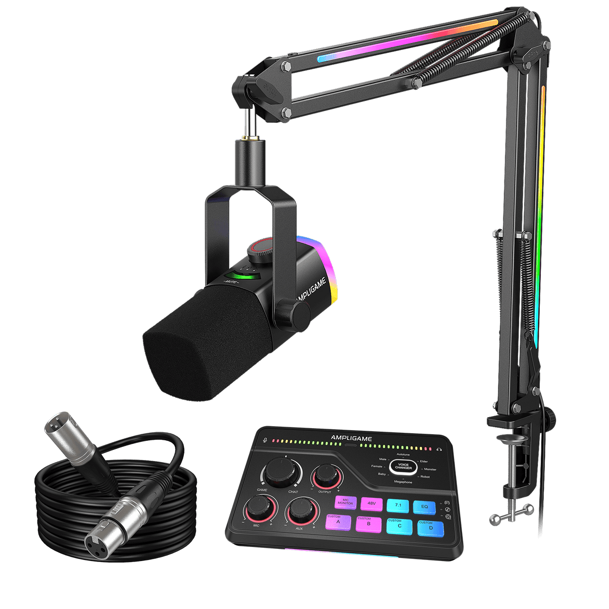 FIFINE AmpliGame AM8PROT USB/XLR Dynamic Microphone Kit with RGB Boom Arm Stand